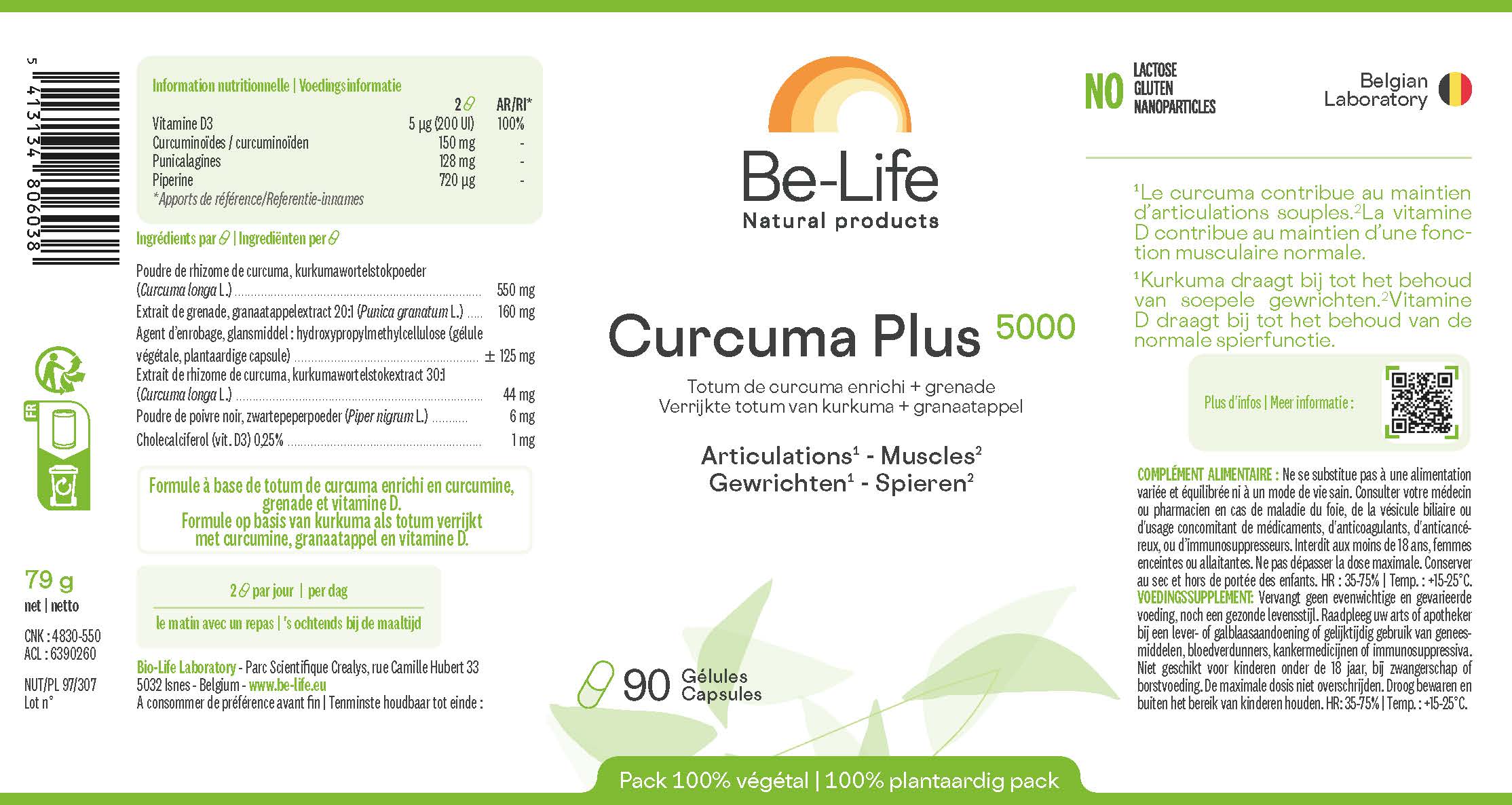 Curcuma Plus 5000 bevat een totum van kurkuma. De volledige plant wordt dus gebruikt om alle bestanddelen ten volle te benutten. Daarnaast is de formule gemaakt met kurkuma van de nieuwste generatie, dat zijn innovatieve vormen speciaal om de biologische beschikbaarheid van curcumine te maximaliseren.