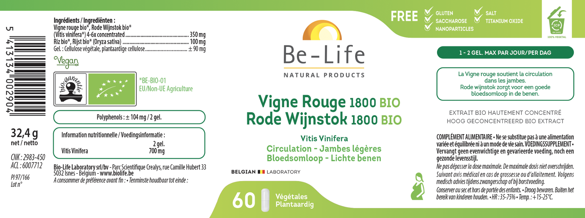 Rode wijnstok (Vitis vinifera*) bio extract 4-6/1 700 mg