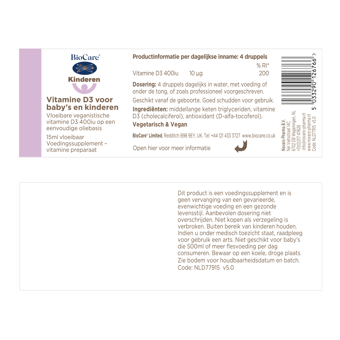 Vitamine D is nodig voor de normale groei en ontwikkeling van botten bij kinderen en draagt bij aan de normale werking van het immuunsysteem. Optimale ondersteuning biedt 400 IE veganistische vitamine D3 per aanbevolen dagelijkse hoeveelheid. Onze veganistische D3 is afkomstig van algen. Eenvoudige, mild smakende formule in een hypoallergene basis van middellange keten triglyceriden, afkomstig van kokosnoten.